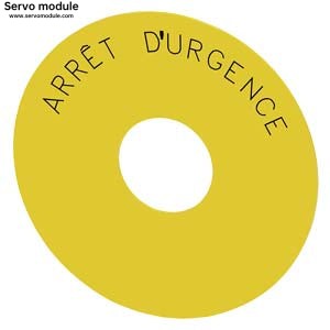 Description:Backing plate round, for EMERGENCY STOP mushroom pushbutton, yellow, self-adhesive, outer diameter 75 mm, inside diameter 23 mm, with inscription: ARRêT D'URGENCE
