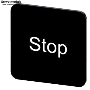 Description:Labeling plate for gluing on enclosure, label size 22x22 mm, black label, white font, with inscription: Stop