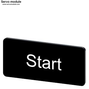 Description:Labeling plate for snapping on or gluing to label holder, label size 12.5x27mm, black label, white font, with inscription: start