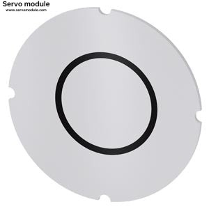 Description:Inscription plate for illuminated pushbutton, round, milky with black font, with graphic symbol: O